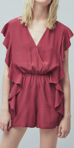 lotus sleeve,v-neckline and an elastic waist,this romper is sure to keep you cozy yet sweet.