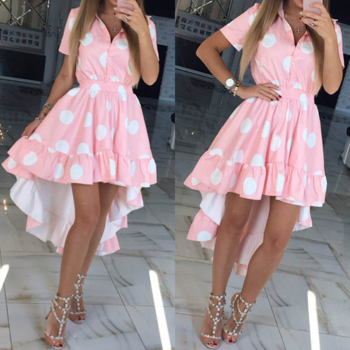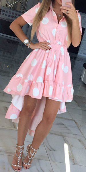Cute round dots, lapel and short sleeves design, this dress can bring you a cozy wearing feeling.