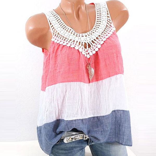 factors to you.Round-neck design,with sleeveless and striped design,which can decorate your female