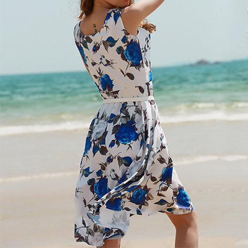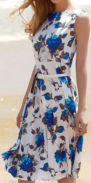 and chic printed design, a white waist strap makes this dress more perfect. This dress can let you