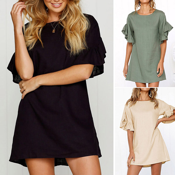Solid color style, with round-neck and trumpet sleeve design, which can provide a sexy silhouette for you.
