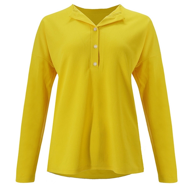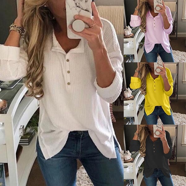 soft material, with lapel collar,long sleeve and one line buttons down the top of shirt.Irreguar and slit hemline taht can showcase