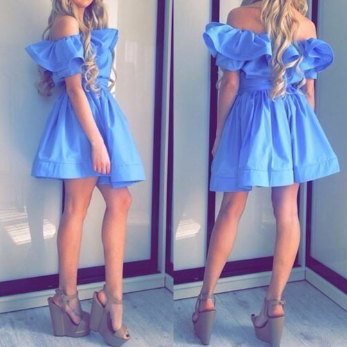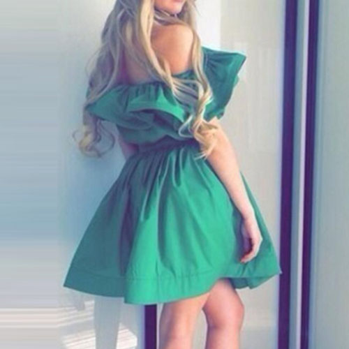 A perfect blend of sexy, fashion and sweet style. With solid color, off shoulder, gathered waist and