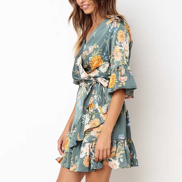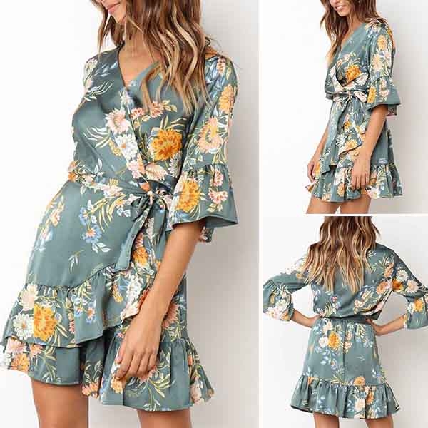 v-neck and ruffle hem,this dress is perfect fit for your dating nights and weekend gatherings.
