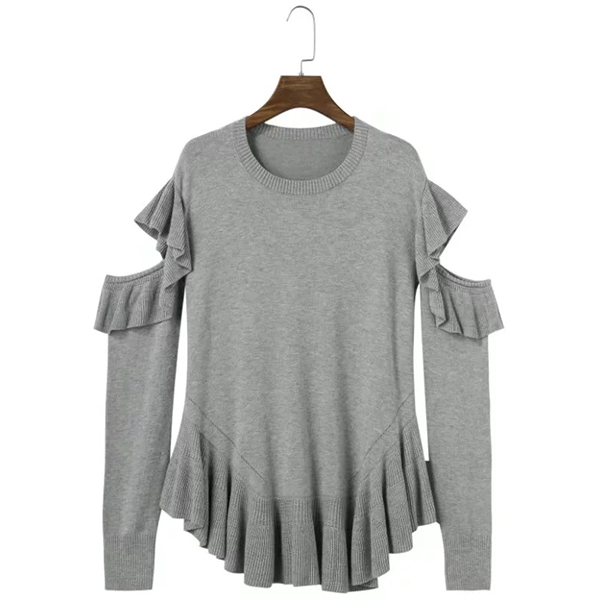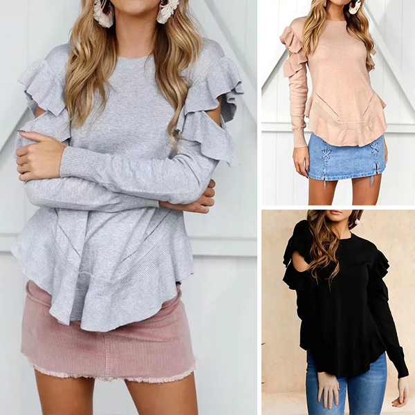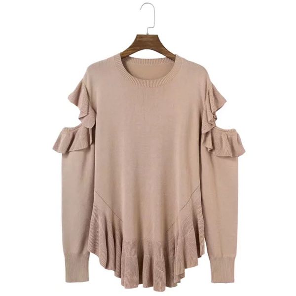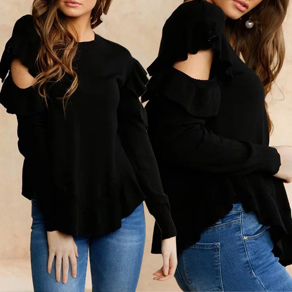 Easy to achieve for a sweet and charming style when you wear this knit top. Solid color style,the sleeve part with hollow
