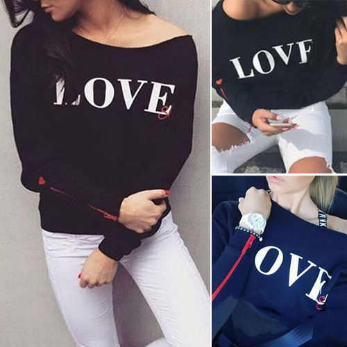 It is printed in letters "LOVE" on the front, accompanied with heart-shaped printed and zipper design