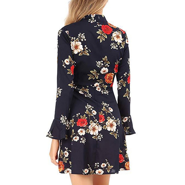 You look so fresh and sweet when you wear this chiffon dress. Boasts vibrant floral print,the stand collar