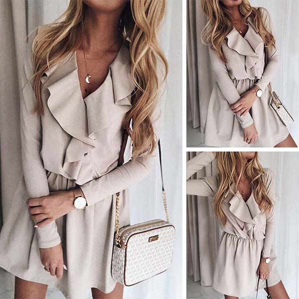 the ruffle v-neck design is the highlight,which can make you look sexy and flirty. No matter for