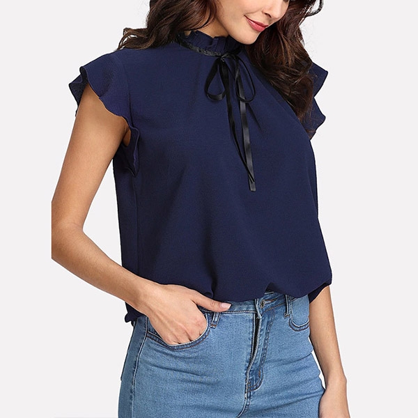 and ruffle stand collar design make this piece look so sweet and attractive. No matter matching with your