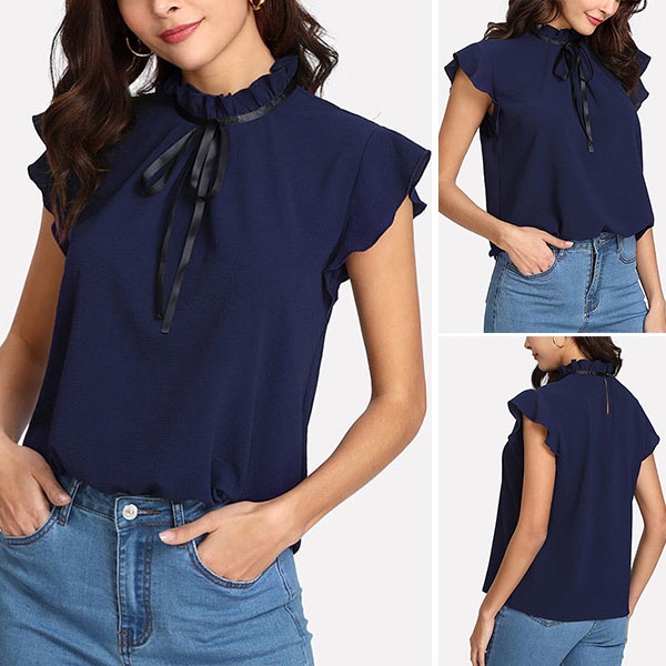 You can easily showcase your sweet side through this blouse. It comes with a solid color,the lotus sleeve