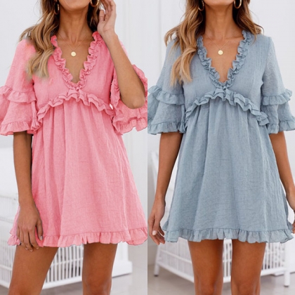 You can have a sweet and charming style when you wear this dress. Comes with a solid color,the lotus