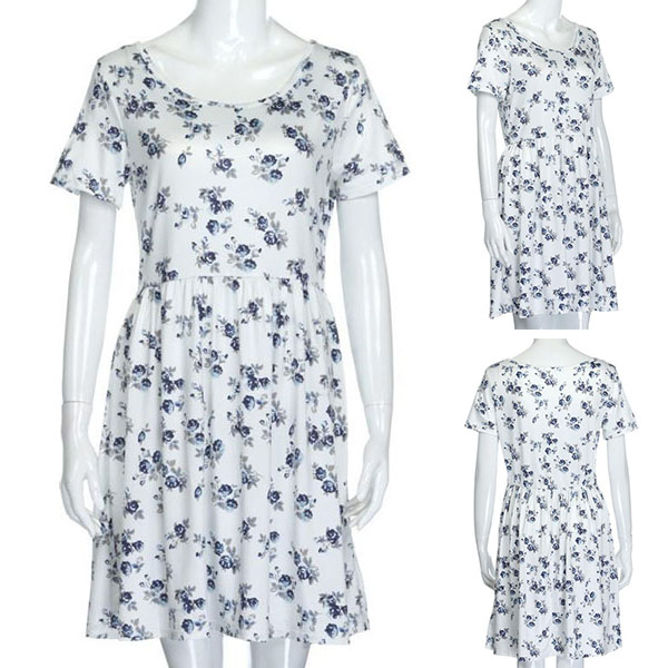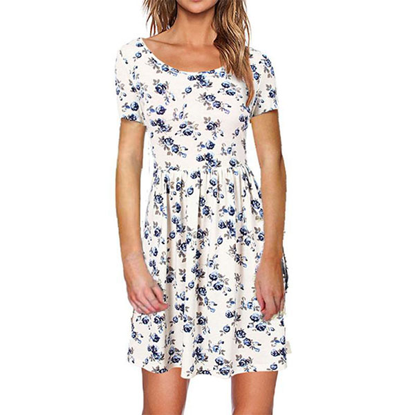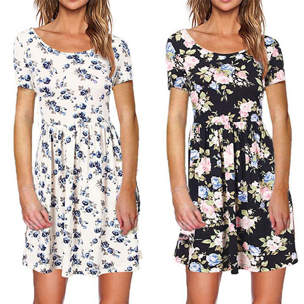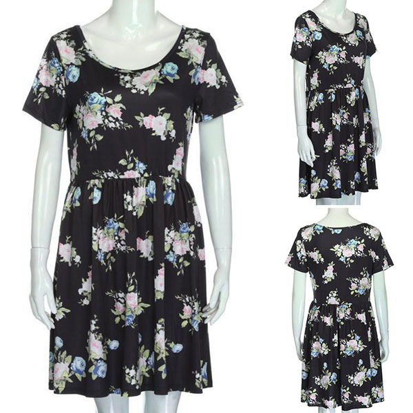 Express your love for floral print through this dress. Boasts vibrant floral print,accompanied with short sleeve,round neck