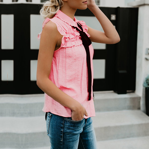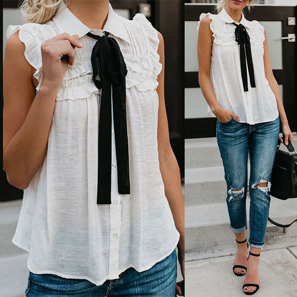This blouse comes with a solid color,finished with sleeveless and POLO collar,simple,classic yet stylish.
