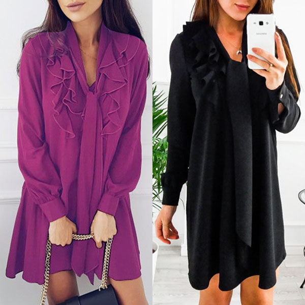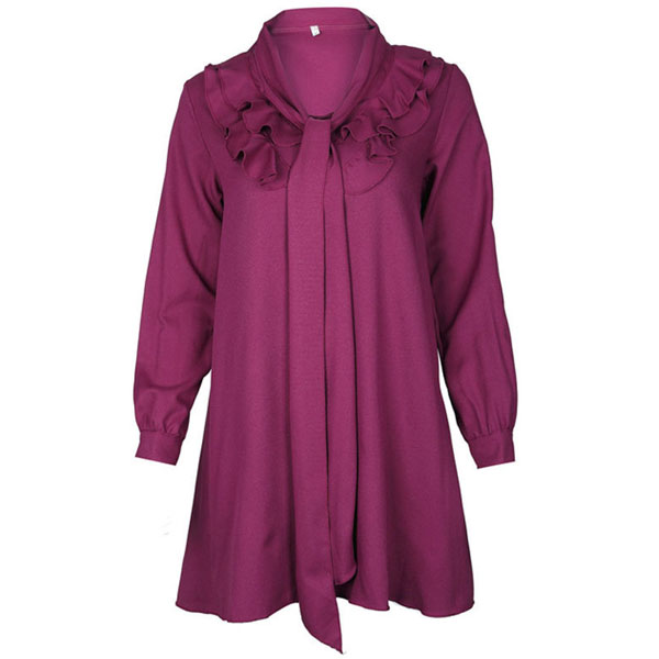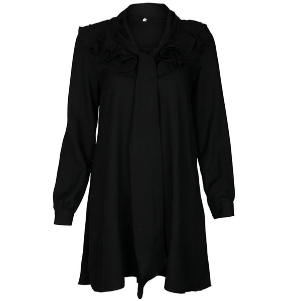 fabric and loose silhouette design can give you an all-day comfort,while the neckline with lace-up and ruffle design will