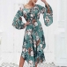 Boasts vibrant floral print,this dress can give you a fresh and sweet style. Moreover,the trumpet sleeve,