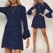 You look so sweet and playful in this dress. It features dots printed pattern,finished with trumpet sleeve and