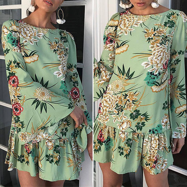 For a fresh and sweet style,you can count on this dress. Its vibrant floral print design will give you a more eye-catching look.