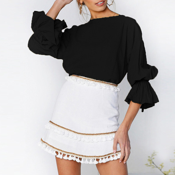 Exude your sweet and charming sense through this wonderful top. Comes with a solid color,the trumpet