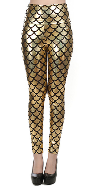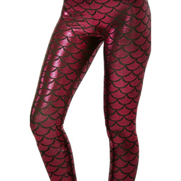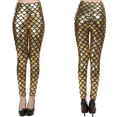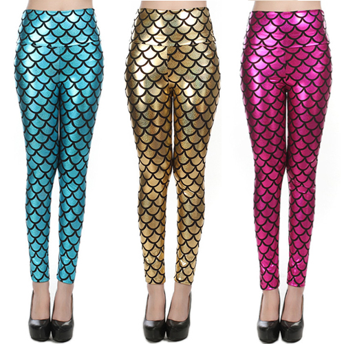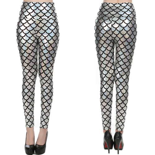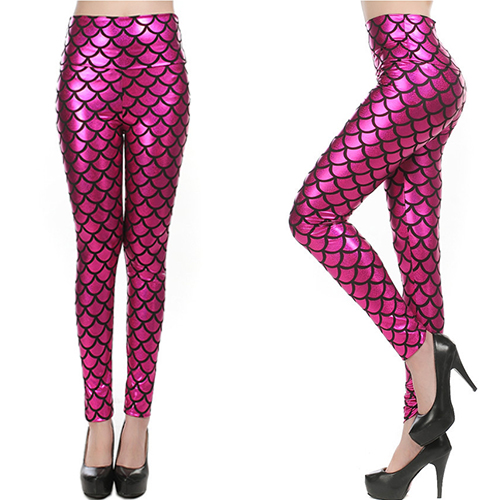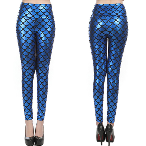 Fashion High Waist Fish Scales Printed Faux Leather Skinny Leggings