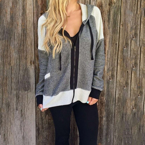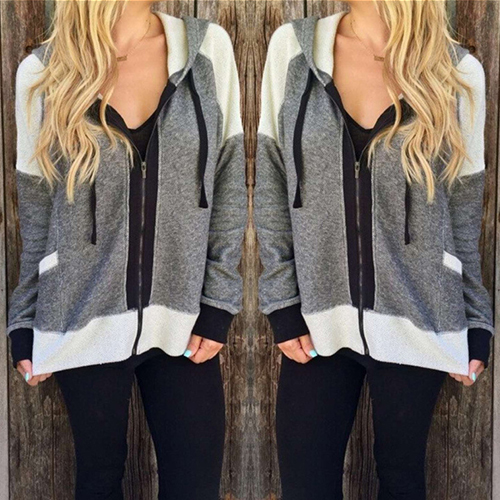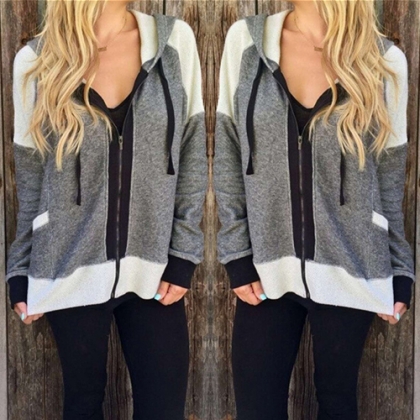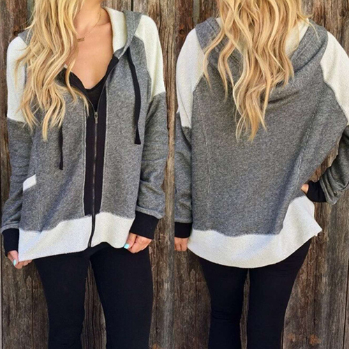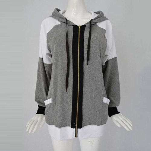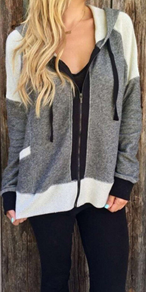 this comfortable sweatshirt coat. Contrast color style, with long sleeve, front zipper