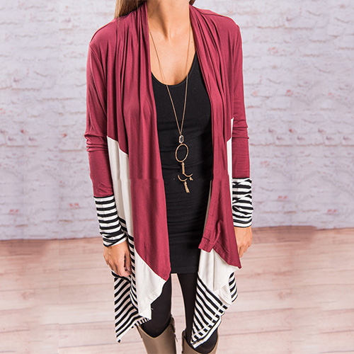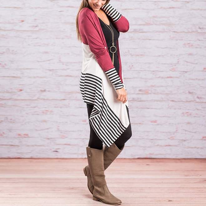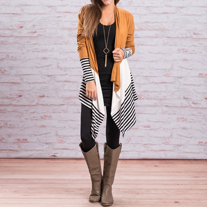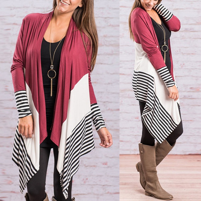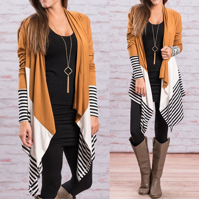 look so eye-catching and attractive. Styled with contrast color, long sleeve and irregular