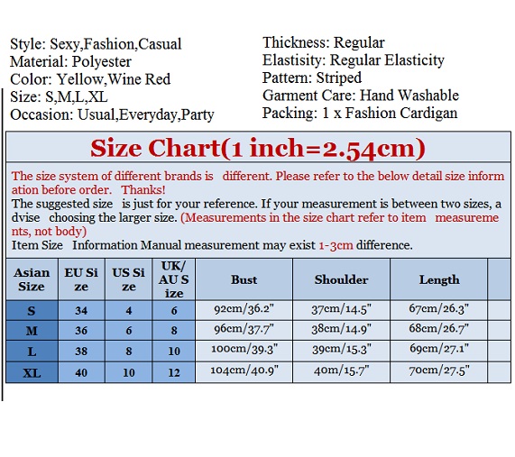 XL : Bust : 104cm(40.94"); Shoulder : 40cm(15.75"); Length : 70cm(27.56");