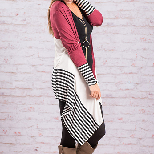 hemline design, the striped spliced ideas can further add its fashion sense. In some chilly
