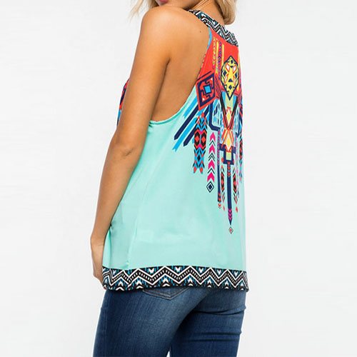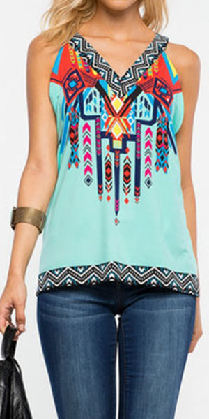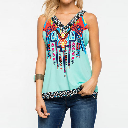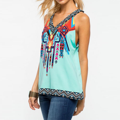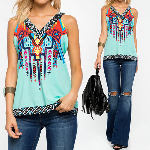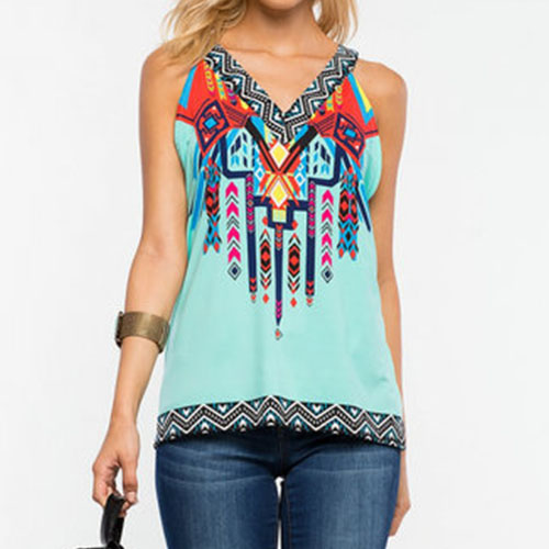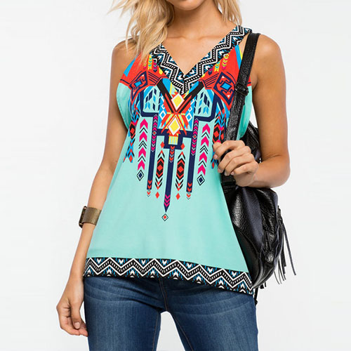 Featuring chic printed, v-neck and sleeveless design, its soft fabric and loose-fitting silhouette