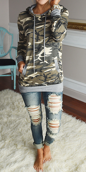 The best way to elevate your wardrobe ensemble is adding a fashion camouflage sweatshirt like this piece.