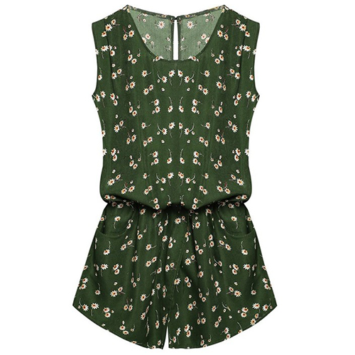 and keyhole back design, 2-side pockets makes this romper more fashion and lovely.