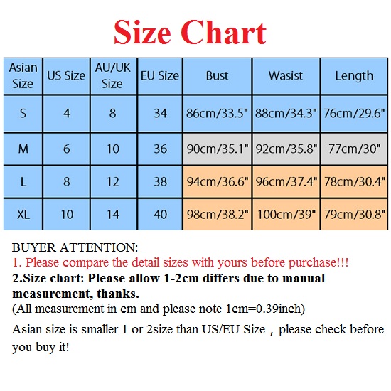 XL : Bust : 98cm(38.58"); Waist : 100cm(39.37"); Length : 79cm(31.1"); Weight:0.165kg