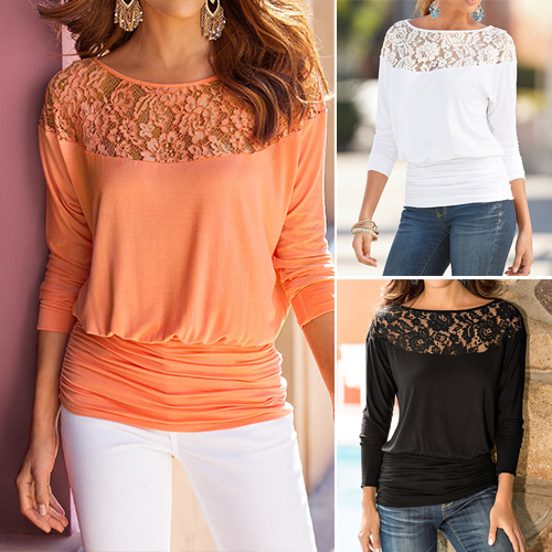 Infuse some fashion and laid back elements with this tops. Featuring round neck, lace spliced and crinkle