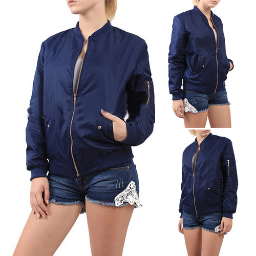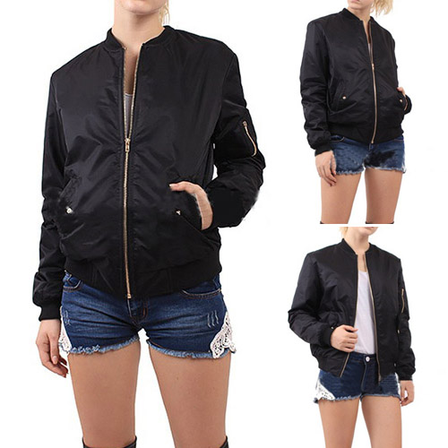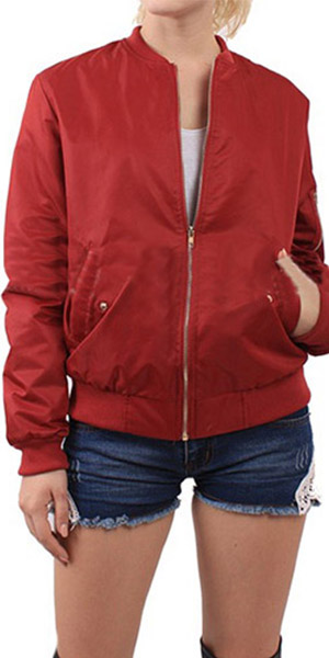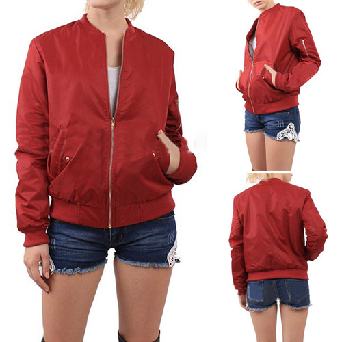 style, it boasts solid color, front zipper and stand collar design, which highlights your chic and stylish look. Jacket