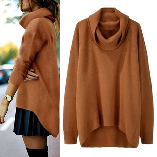 added with turtleneck and high-low hemline design, this sweater offers a chance to create the style