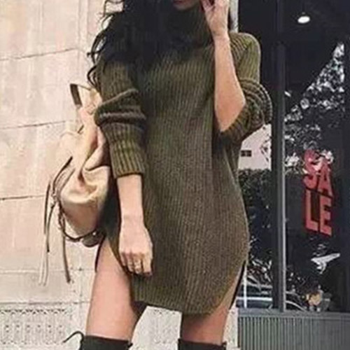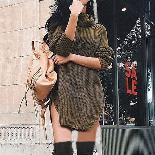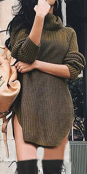 Let this sweater warm you at the whole winter. It is crafted with turtleneck, long sleeve and solid color