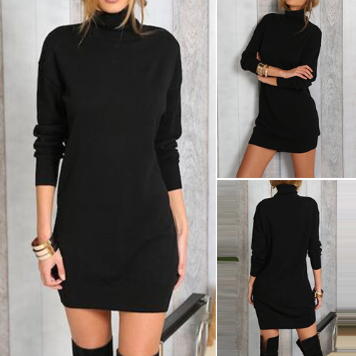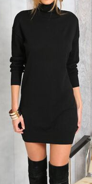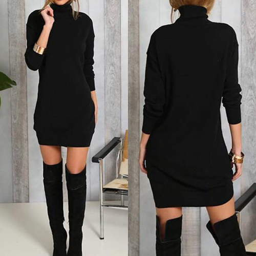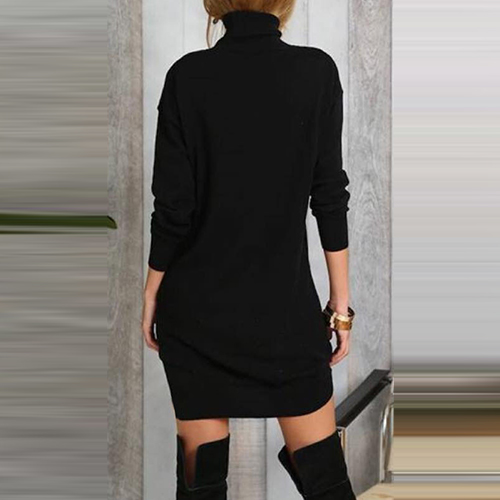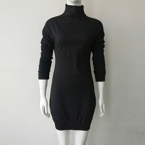 Trendy Solid Color Turtleneck Long Sleeve Slim-fitting Dress(It's small, you should better order one size larger)