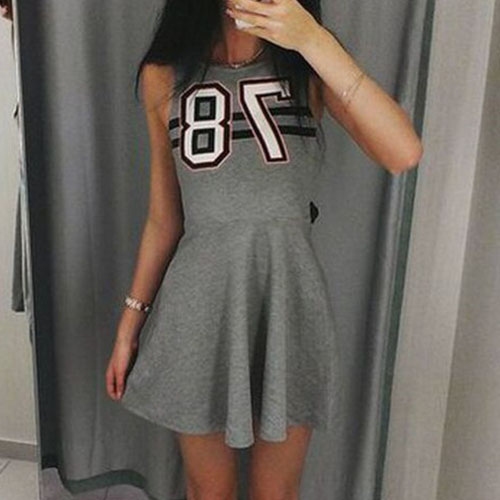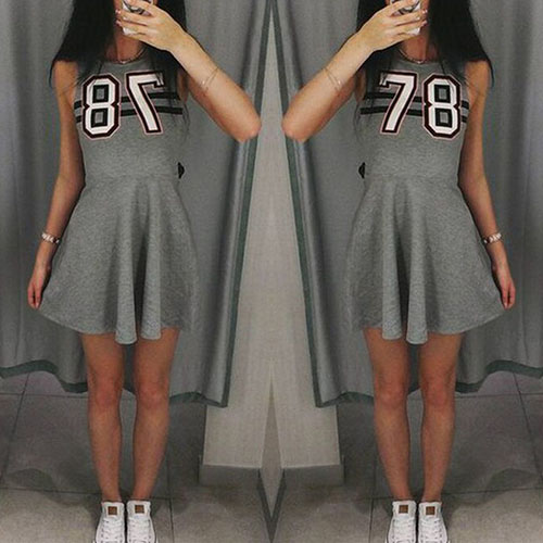 Featuring numeric printed and sleeveless and round neck design, this dress would provide you a