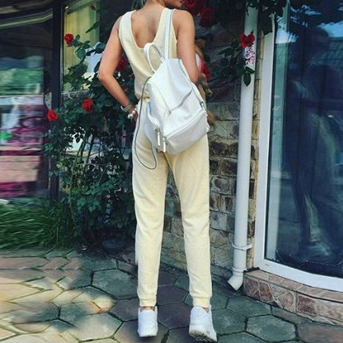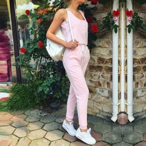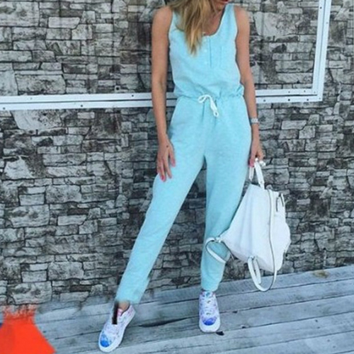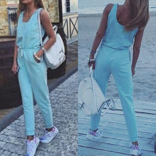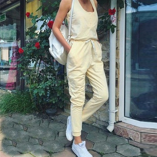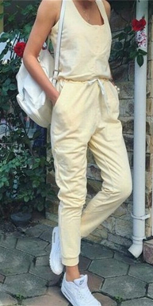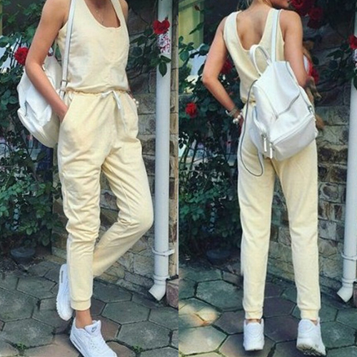 With u-neck and sleeveless design, solid color jumpsuit can bring a cool feeling at hot summer.