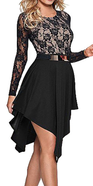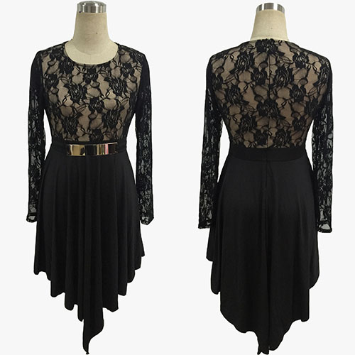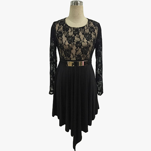 Classic lace spliced and waistband design, it can show your slender figure. And irregular hem