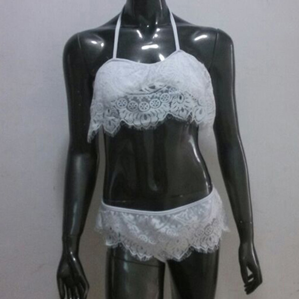 Showcase your refined style and sexy flavor in this swimwear. Halter style,with lace spliced design,
