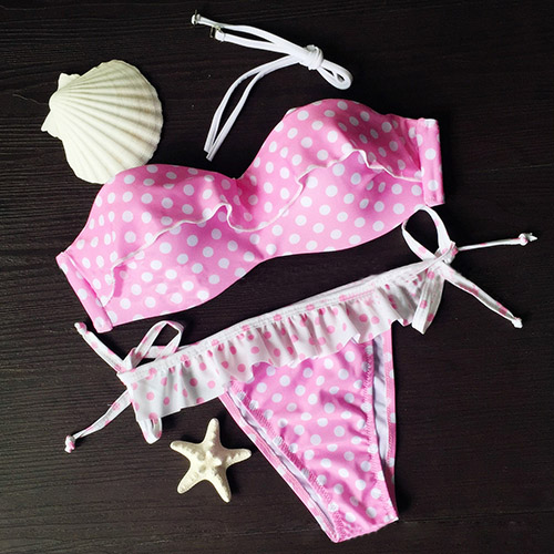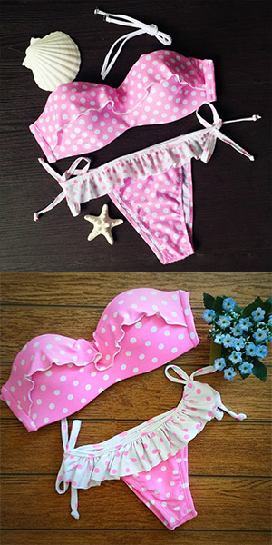 Features sweet dots pattern and flouncing design,gives you an eye-catching look.