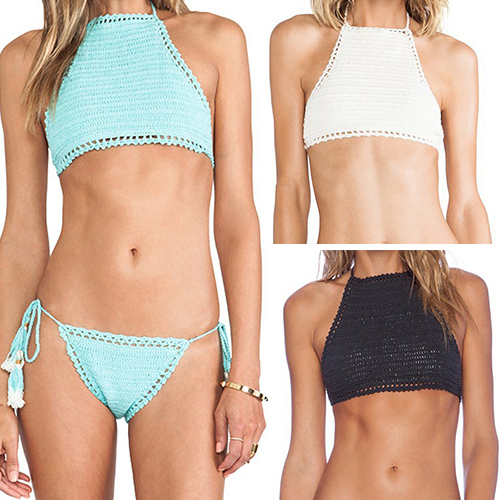 This bikini set features hollow out knitted style,with halter design. In it,everyone will envy you.
