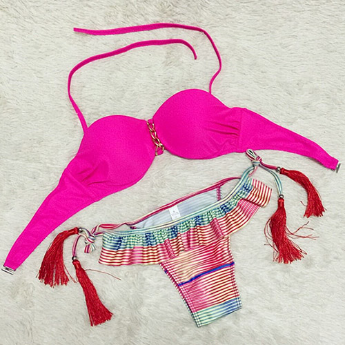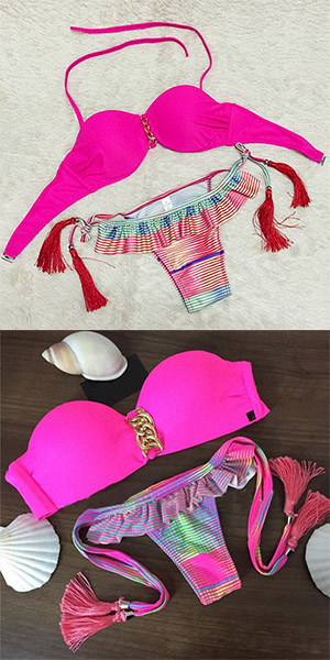 Show the beach who's boss in this amazing swimsuit! Bra with hoop design,chic and attractive.
