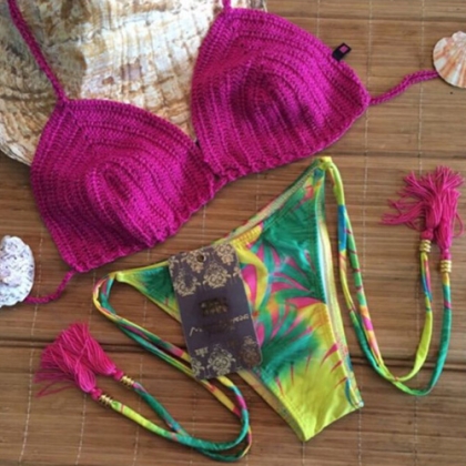 Sexy Knitted Floral Print Bikini Set