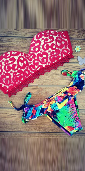 Triangle briefs with chic and colorful floral print pattern. Take this bikini set to