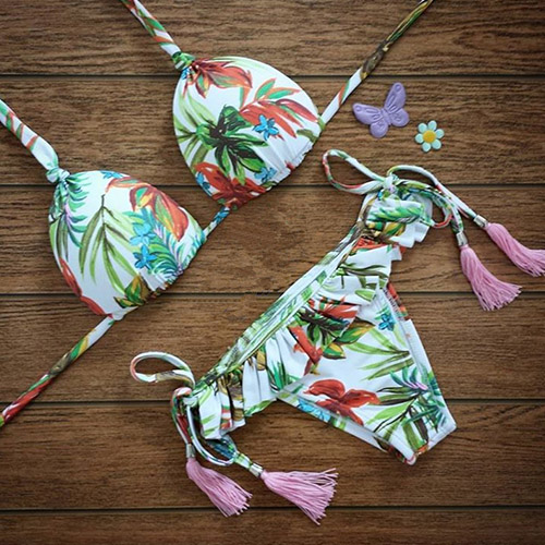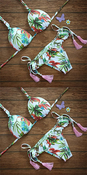 Make a lasting impression at the pool or on the beach in this sweet and sexy bikini set.