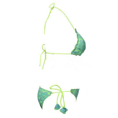 Adjustable neck and back ties. Triangle pant boasts eye-catching side ties. You wil make them envy in this bikini.