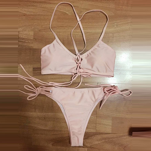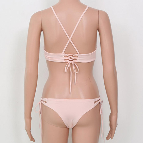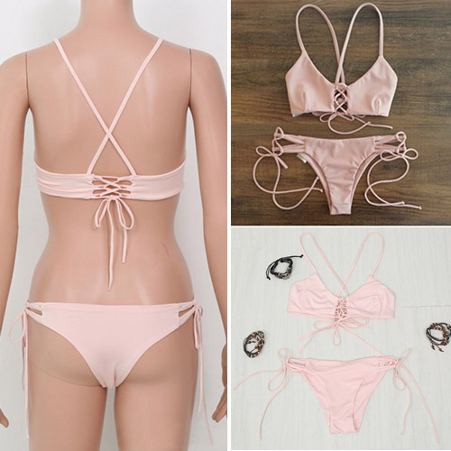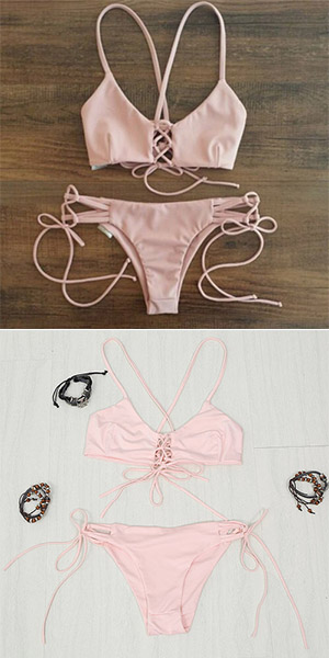 Then choose this set of bikini! Sweet pink color,with adjustable lace-up design,sexy and