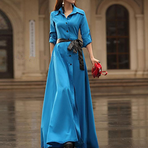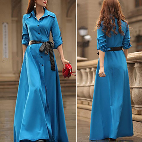 Wearing this Bohemian Style dress in the street or any other places,you will absolutely be the focus and receive the envious eyes. Pure color design,POLO collar,front single-breasted design and floor-length hemline. You will instantly become a fashion godess in this dress.