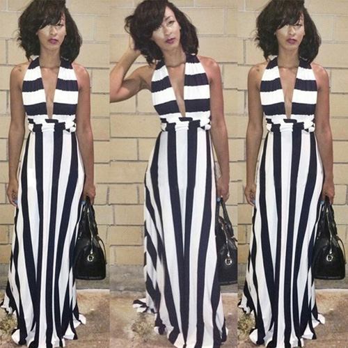 contrast color strip style. Another characteristic of this dress is the belt, it can adjust the measure of the